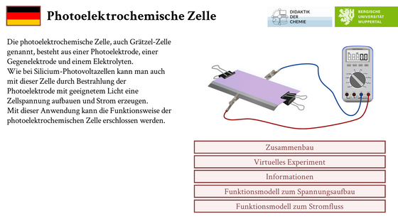 Übersicht, Zusammenbau und Funktionsweise der photoelektrochemischen Zelle in Wort und Bild.