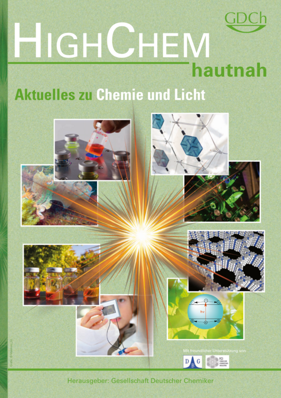 Ein facettenreiches Kaleidoskop mit Kontexten und Anwendungen von Photoprozessen entstand anlässlich des Internationalen Jahr des Lichts 2015. Über 50 Wissenschaftlerinnen und Wissenschaftler hatten in der GDCh Wochenschau über Prozesse mit Lichtbeteiligung berichtet. Die Berichte wurden in der Broschüre „HighChem – Aktuelles zu Chemie und Licht“ veröffentlicht. Sie können hier nachgelesen werden. Für Bilder mit höherer Auflösung zu einzelnen Themen empfiehlt es sich, die Autorinnen und Autoren der entsprechenden Beiträge zu kontaktieren.